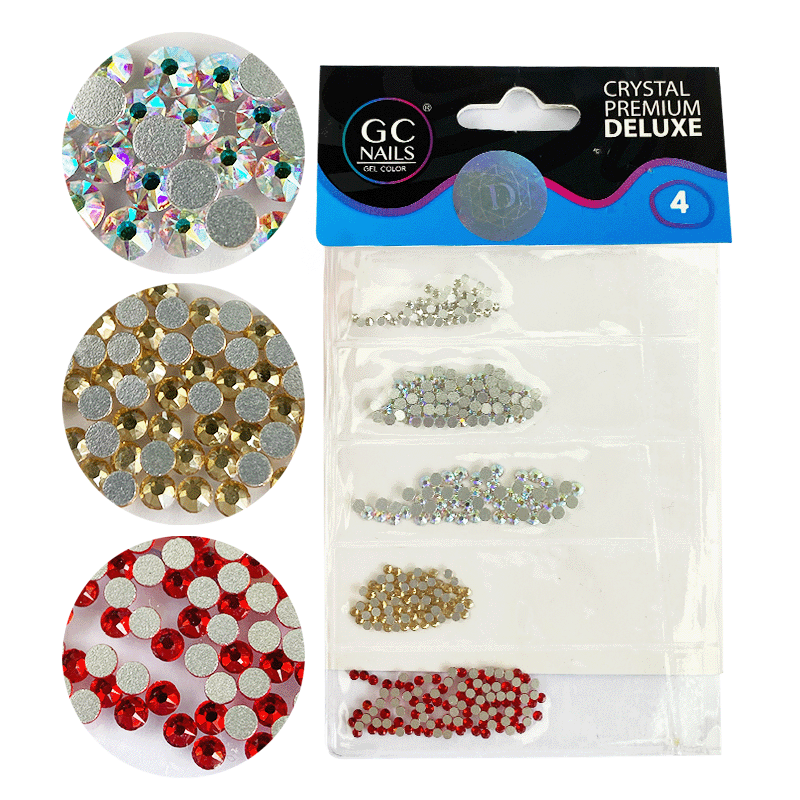 Cristales plata, plata tornasol, dorados, rojos