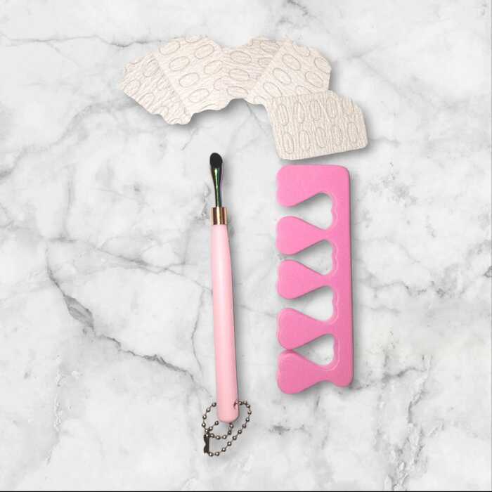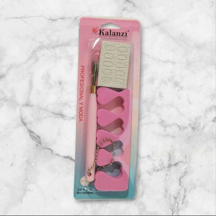 Kit Empujador de cuticula metalico con lija autoadherible y separador de dedos