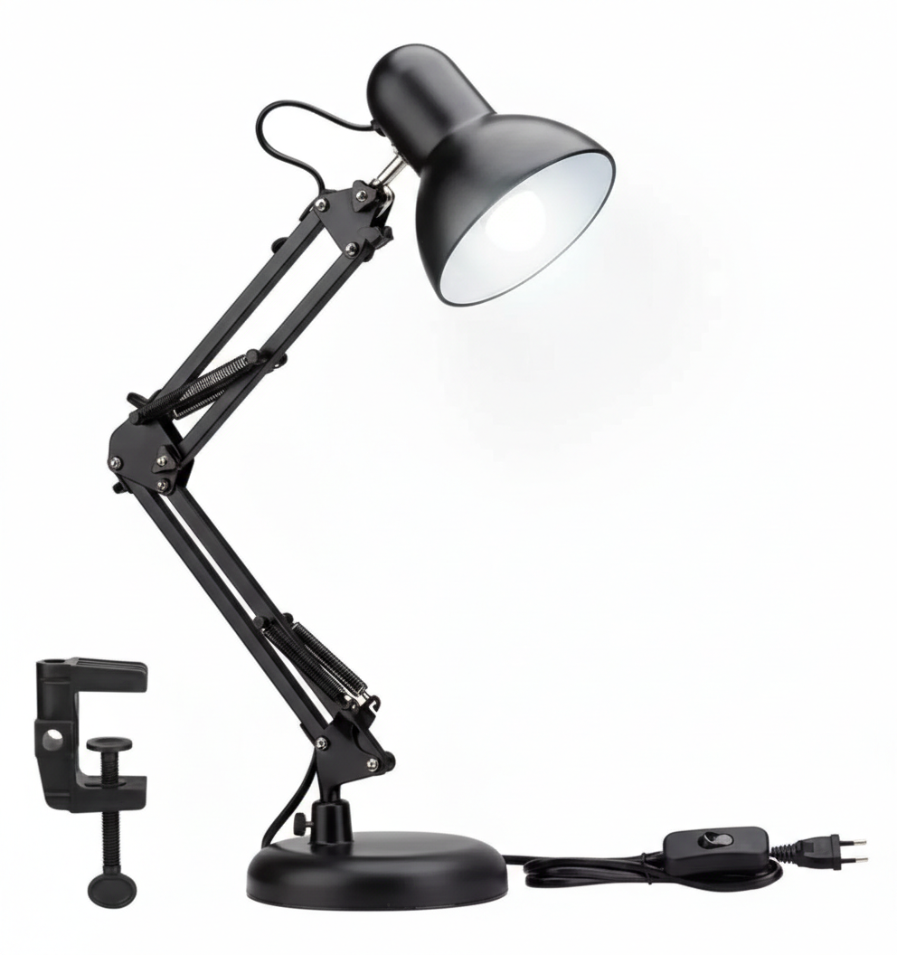 Lámpara de escritorio articulada con base y foco AT-1002 negra