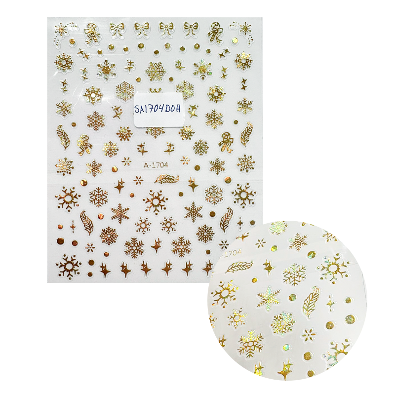 Stickers Copos de Nieve Dorado Holográfico A-1704